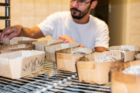 Nos équipes de boulangers travaillent avec soin et rigueur pour produire des pains artisanaux de qualité.